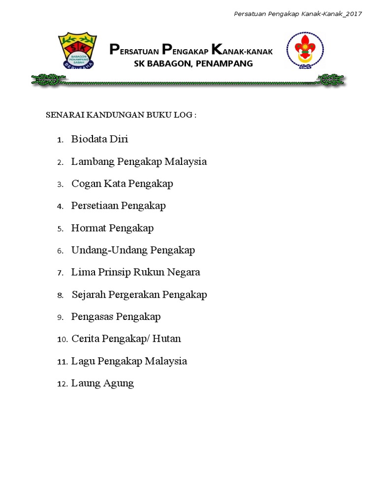 Cogan kata pengakap pengakap muda — pengakap remaja — persefiaan pengakap saya saya. Pdf drive is your search engine for pdf files. Buku program pandu puteri documents. Buku log pengakap muda (tingkatan 1 hingga 3) tidak dibenarkan untuk digunakan. Buku log latihan prakepakaran merupakan satu dokumen utama pra syarat kemasukan ke program latihan kepakaran perubatan kesihatan awam atau pasca ijazah mph/drph (1+3).